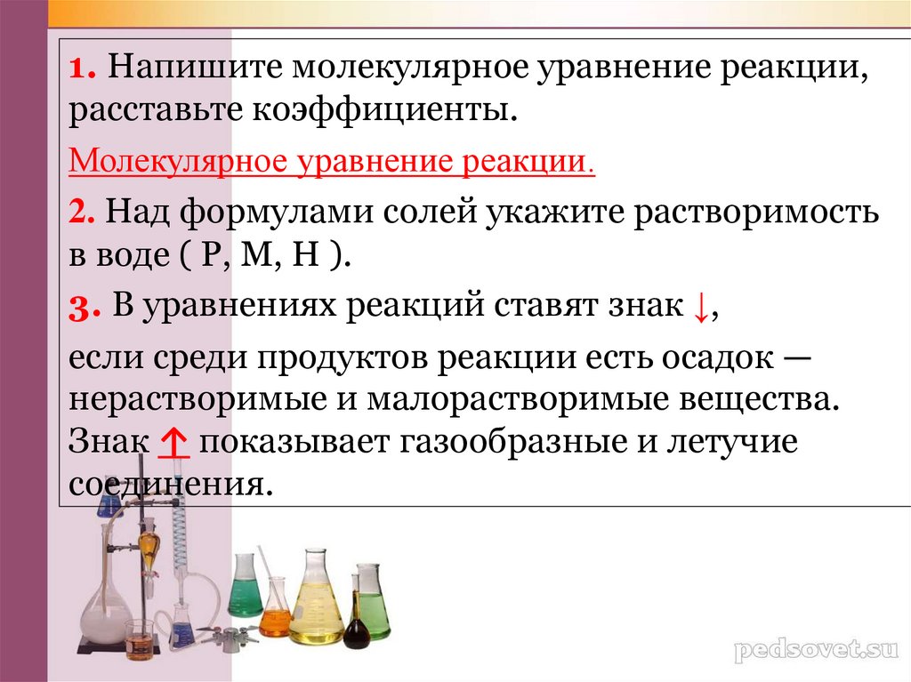 1. Напишите молекулярное уравнение реакции,расставьте коэффициенты.