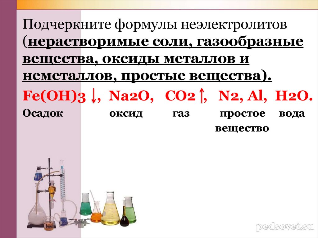 Подчеркните формулы неэлектролитов(нерастворимые соли, газообразные