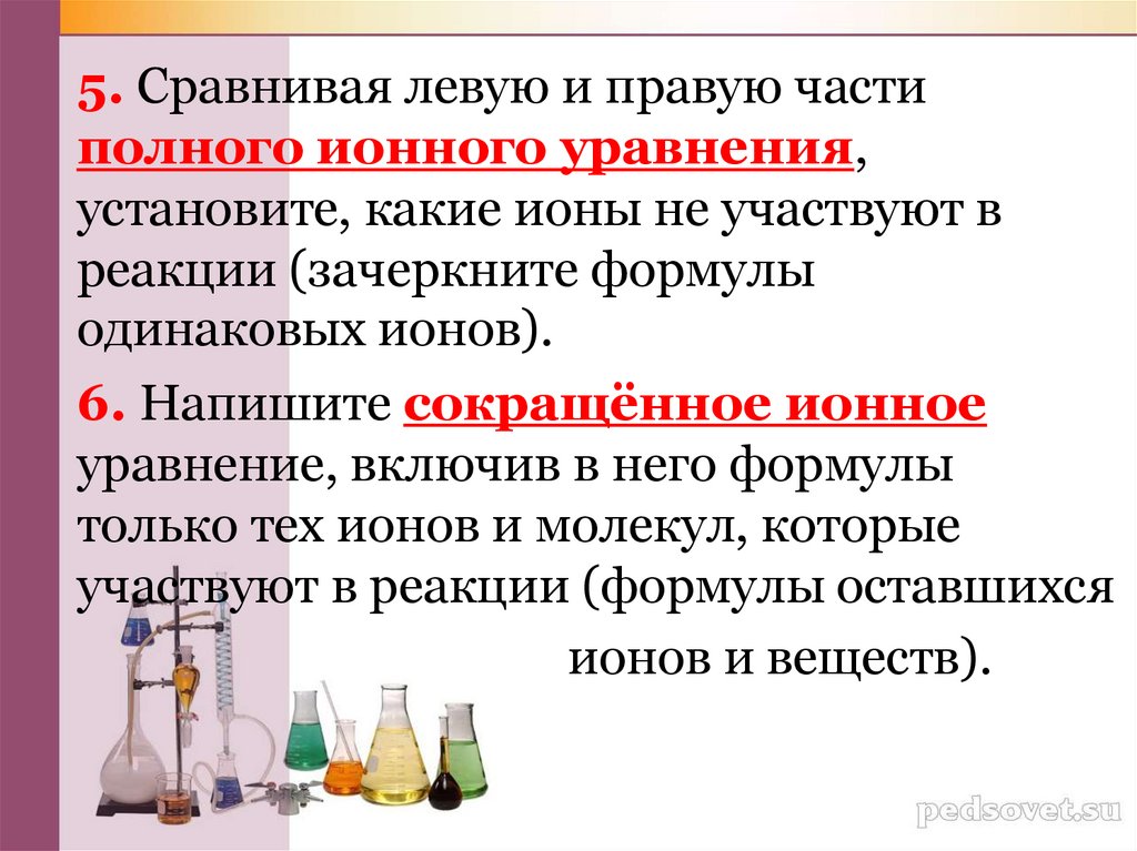 5. Сравнивая левую и правую частиполного ионного уравнения,