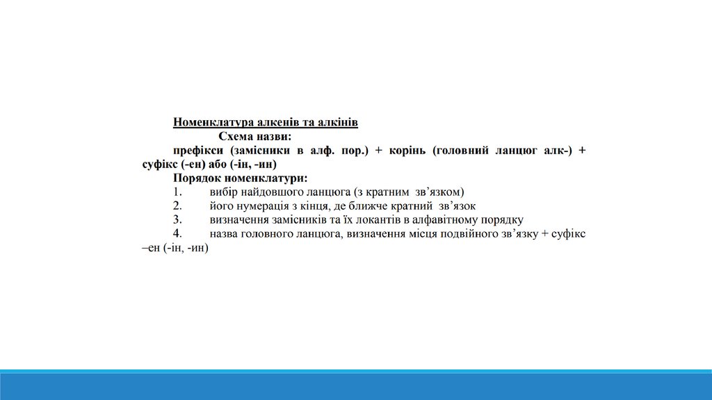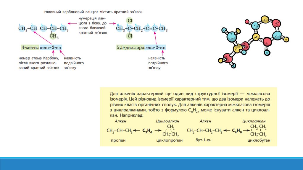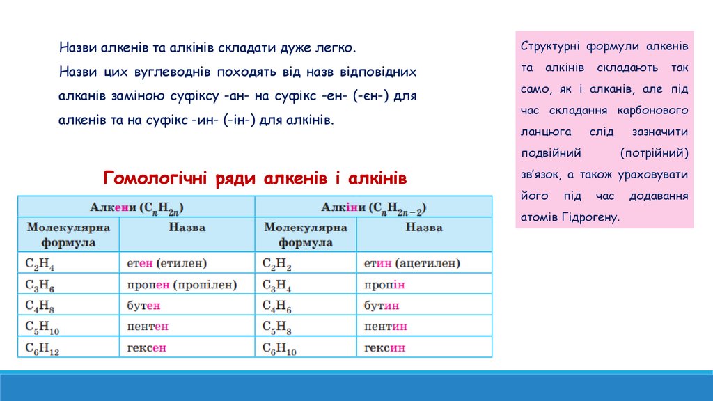 Назви алкенів та алкінів складати дуже легко.Структурні формули алкенів