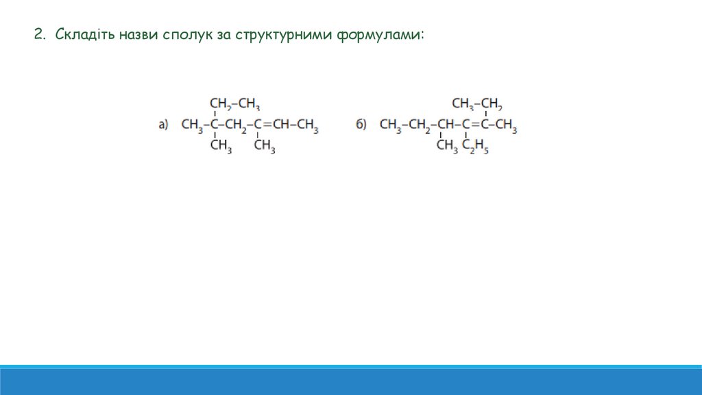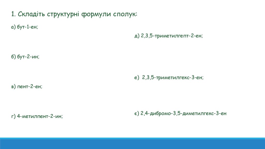 1. Складіть структурні формули сполук:а) бут-1-ен;