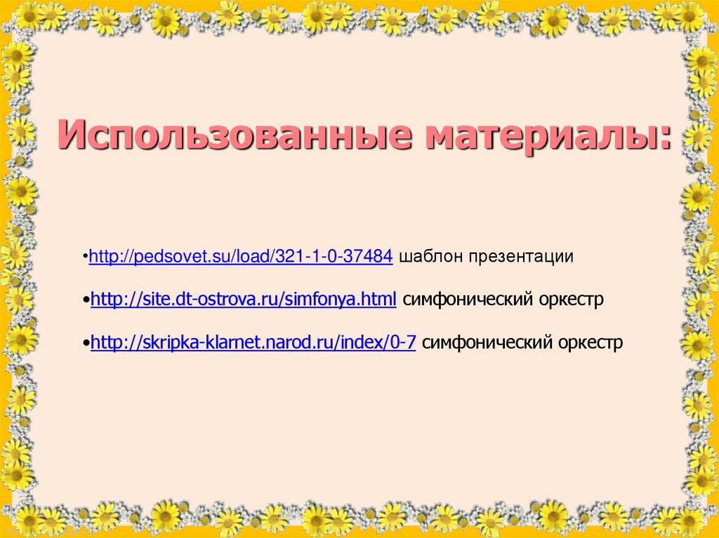 Использованные материалы:•http://pedsovet.su/load/321-1-0-37484 шаблон презентации