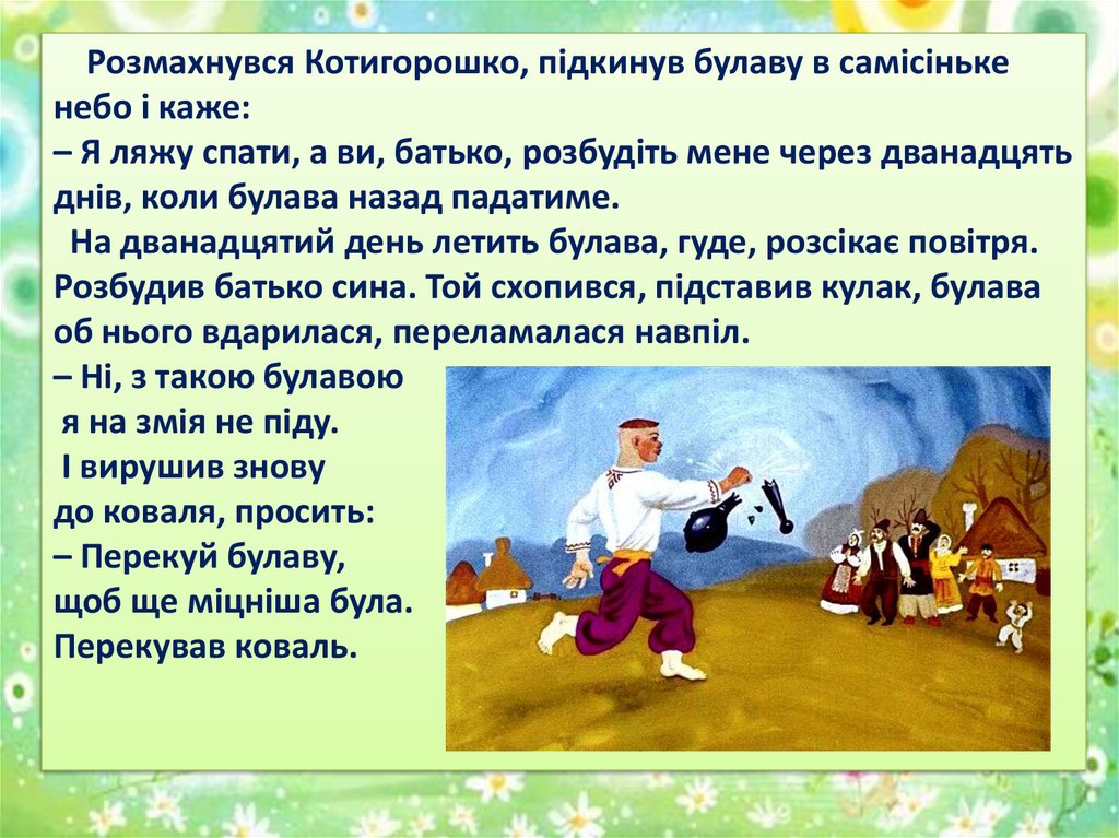 Котигорошко знову булаву підкинув та й спати ліг. Ачерез дванадцять днів булава до нього повернулася,
