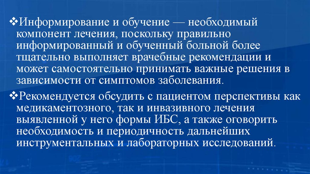 Информирование и обучение — необходимыйкомпонент лечения, поскольку правильно