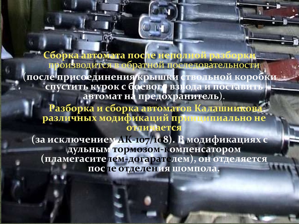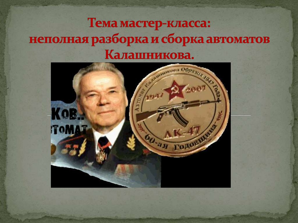 1. Тема мастер-класса: неполная разборка и сборка автоматов Калашникова.