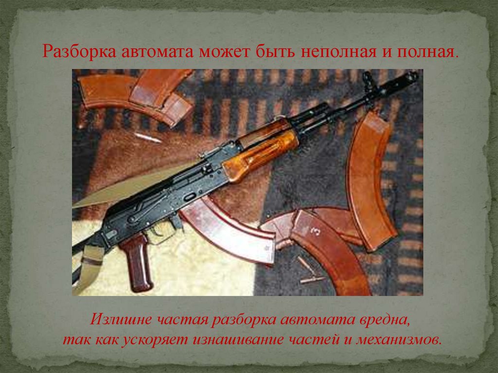 Разборка автомата может быть неполная и полная.Излишне частая разборка автомата вредна,