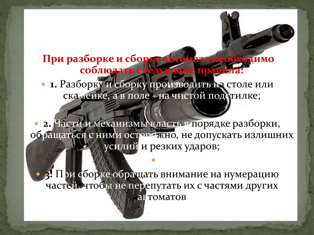 При разборке и сборке автомата необходимособлюдать следующие правила:
