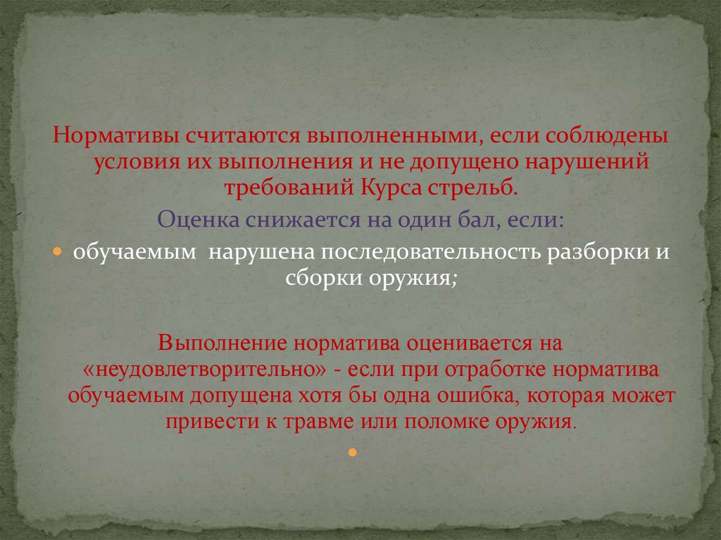 Нормативы считаются выполненными, если соблюденыусловия их выполнения и не допущено нарушений