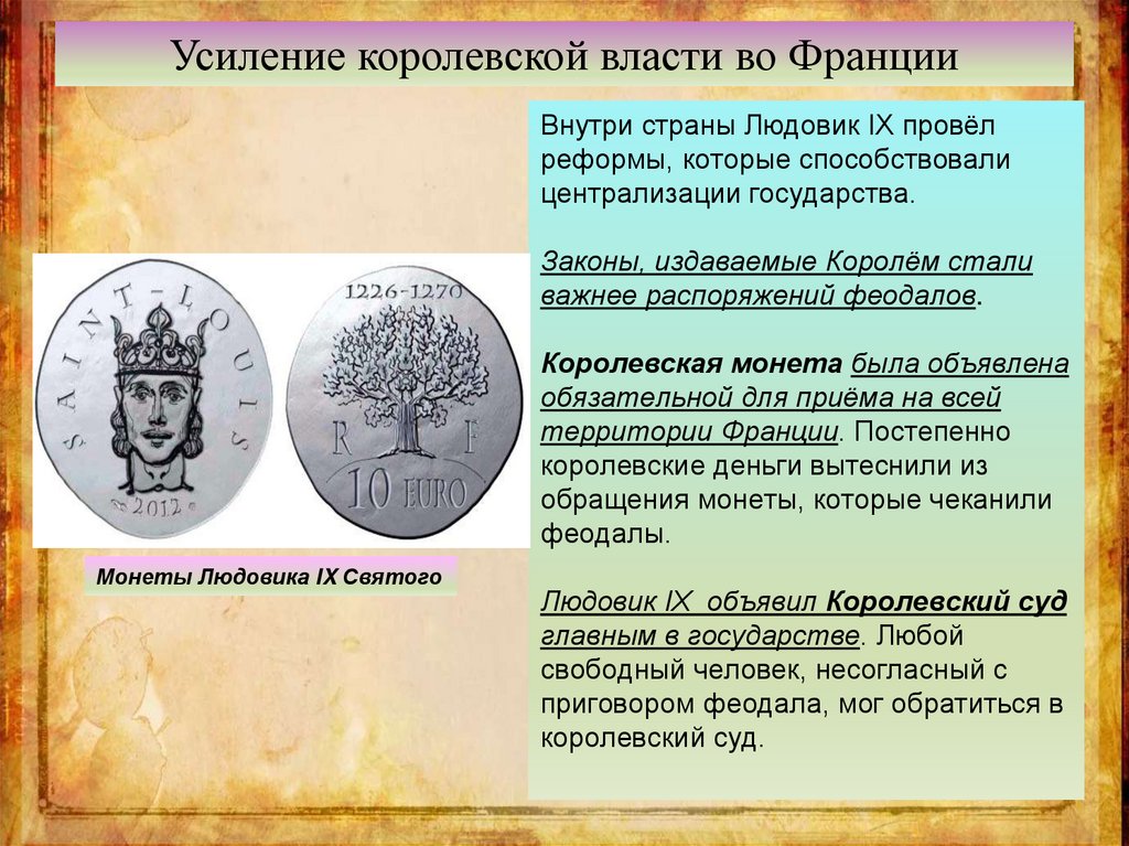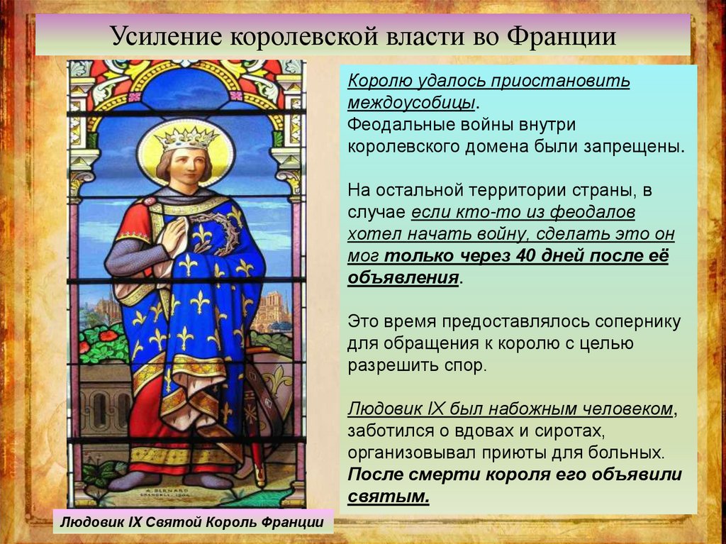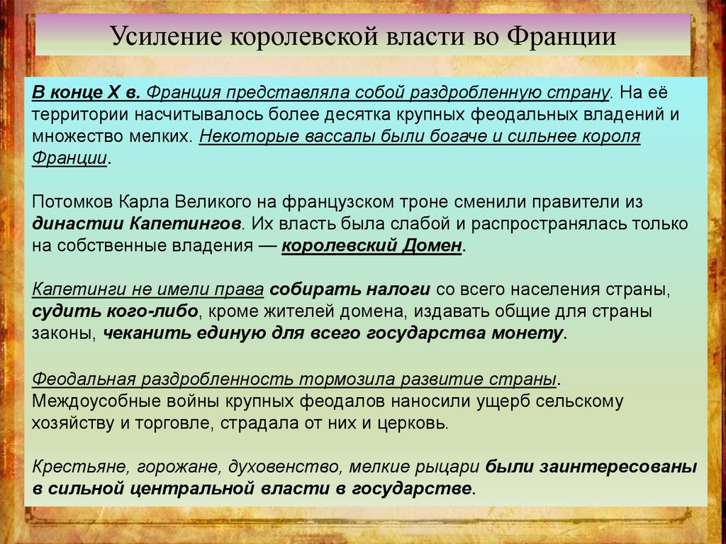 Усиление королевской власти во ФранцииКоролю удалось приостановить