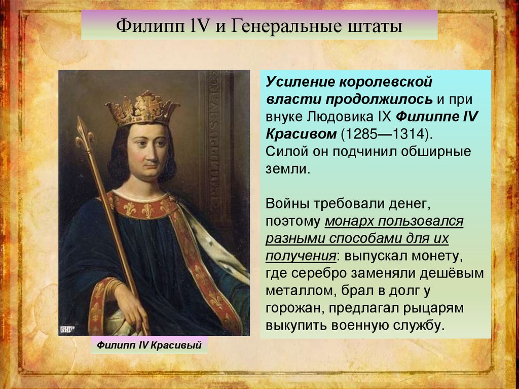 Филипп lV и Генеральные штатыПополнить казну король попытался и