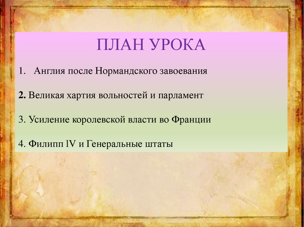 ПЛАН УРОКА1. Англия после Нормандского завоевания