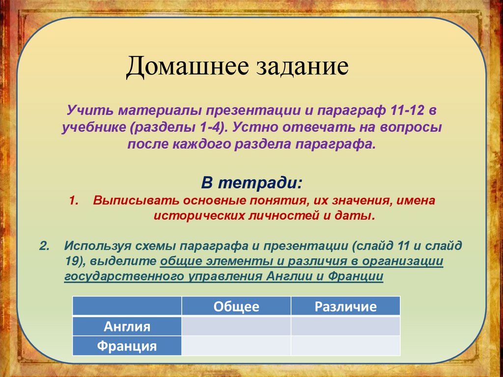 Домашнее заданиеУчить материалы презентации и параграф 11-12 в