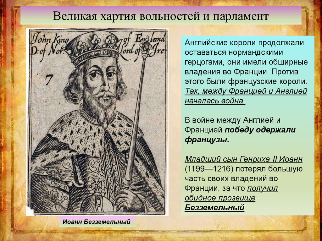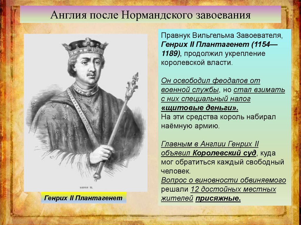 Англия после Нормандского завоеванияПравнук Вильгельма Завоевателя,