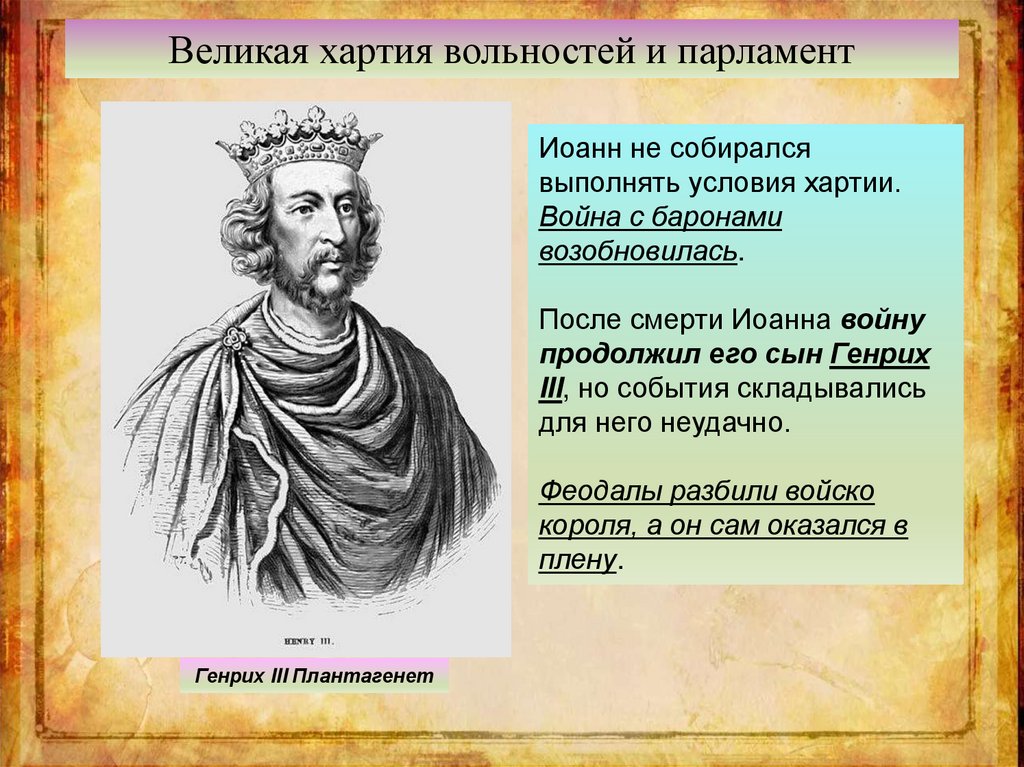 Великая хартия вольностей и парламентАнглийские короли продолжали