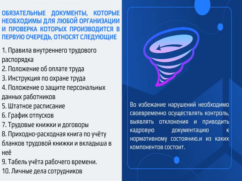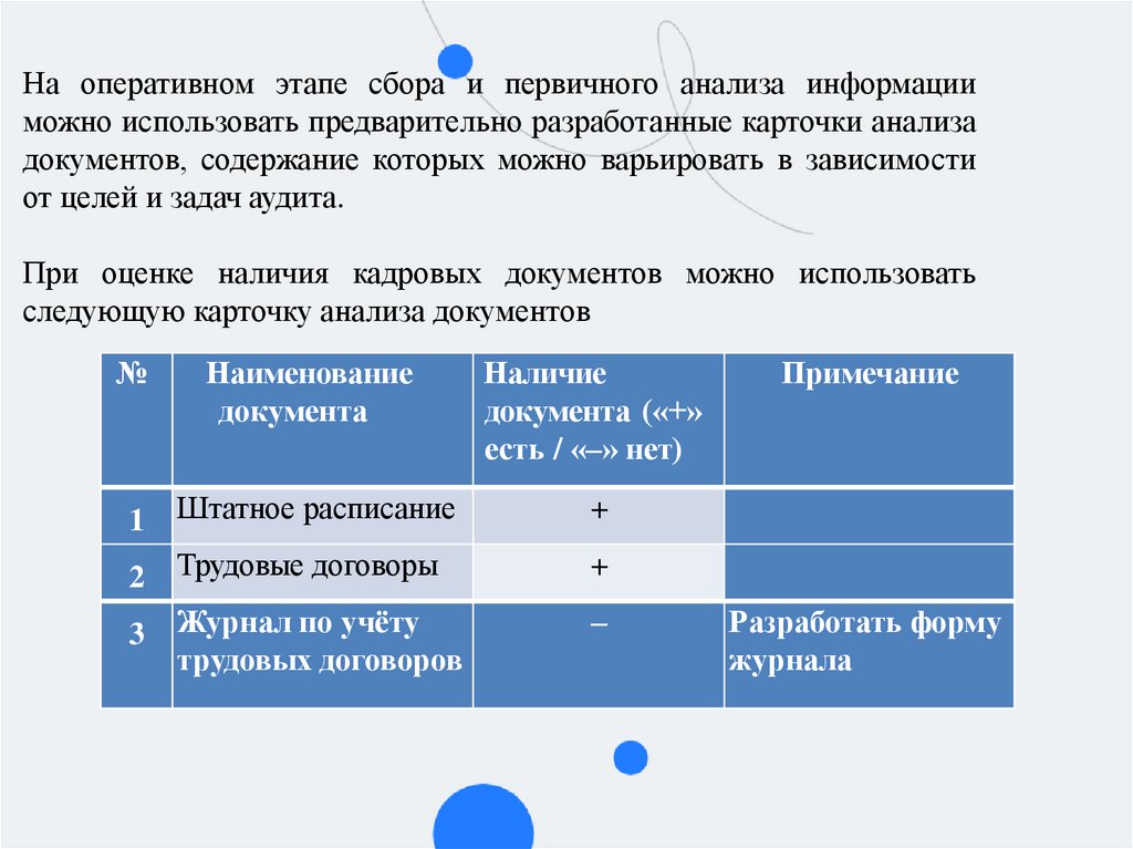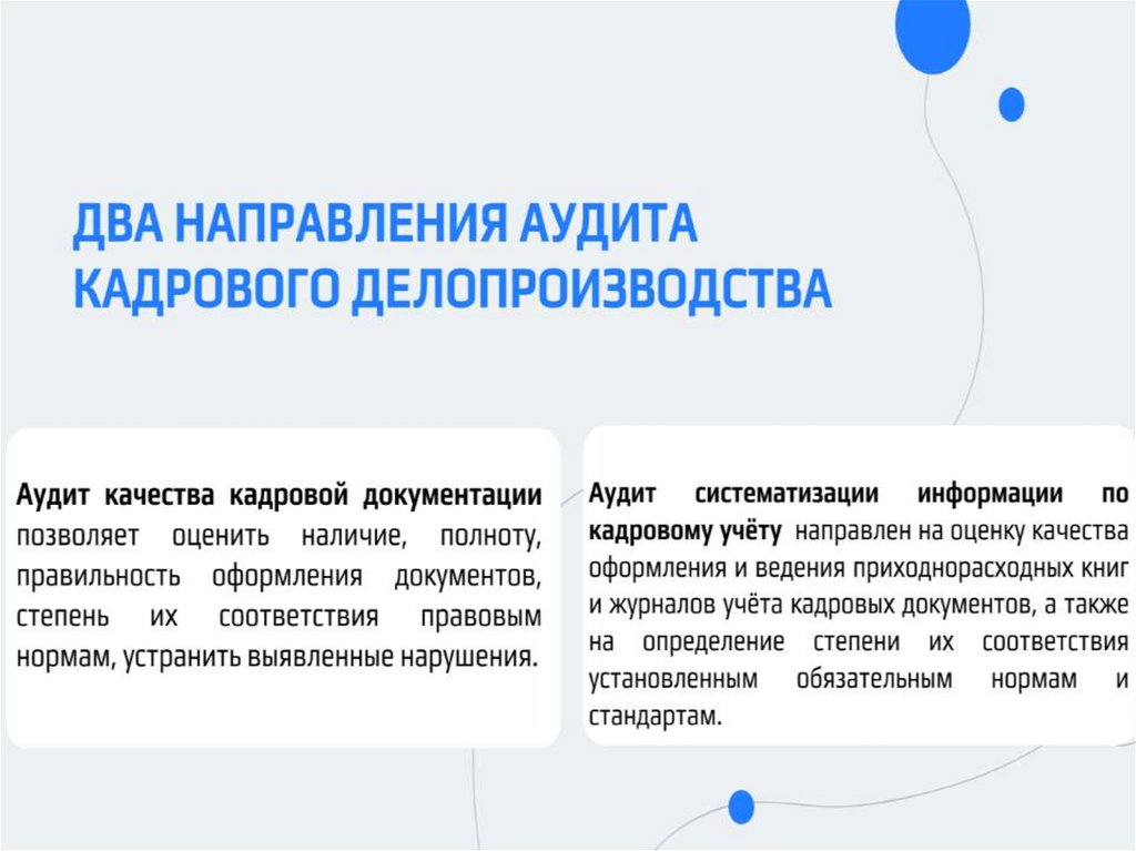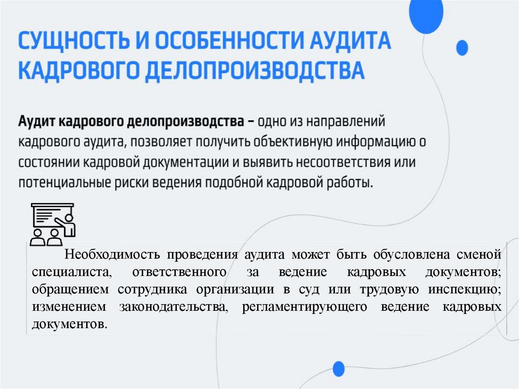 Необходимость проведения аудита может быть обусловлена сменойспециалиста, ответственного за ведение кадровых документов;