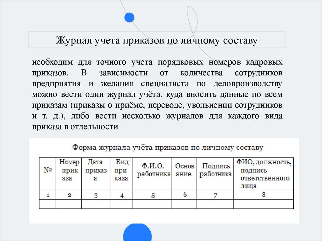 Журнал учета приказов по личному составунеобходим для точного учета порядковых номеров кадровых