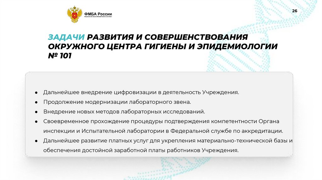 1. ДОКЛАД О ДЕЯТЕЛЬНОСТИ ФЕДЕРАЛЬНОГО ГОСУДАРСТВЕННОГО БЮДЖЕТНОГО УЧРЕЖДЕНИЯ ЗДРАВООХРАНЕНИЯ «ЦЕНТР ГИГИЕНЫ И ЭПИДЕМИОЛОГИИ № 101