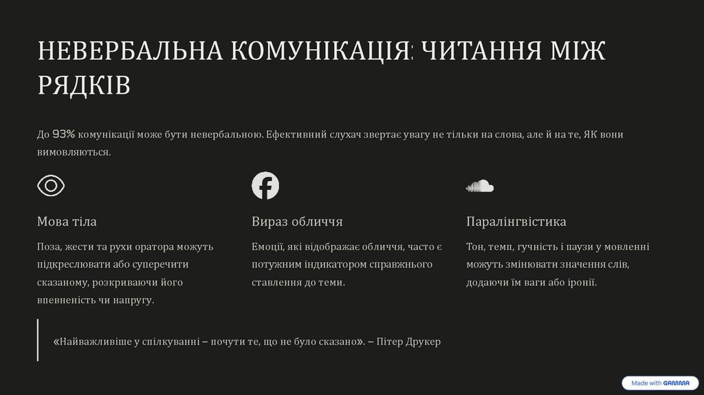 До 93% комунікації може бути невербальною. Ефективний слухач звертає увагу не тільки на слова, але й на те, ЯК вони
