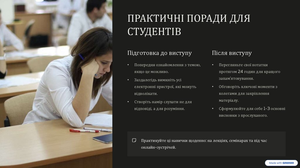 Практикуйте ці навички щоденно: на лекціях, семінарах та під час