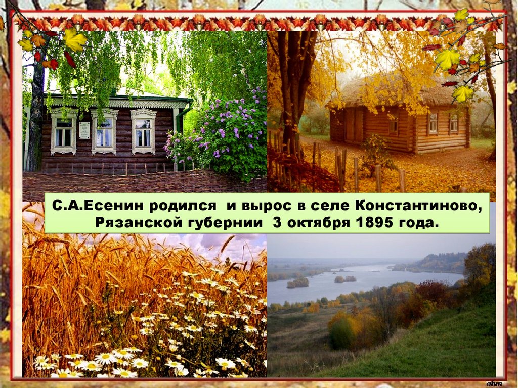 С.А.Есенин родился и вырос в селе Константиново,Рязанской губернии 3 октября 1895 года.
