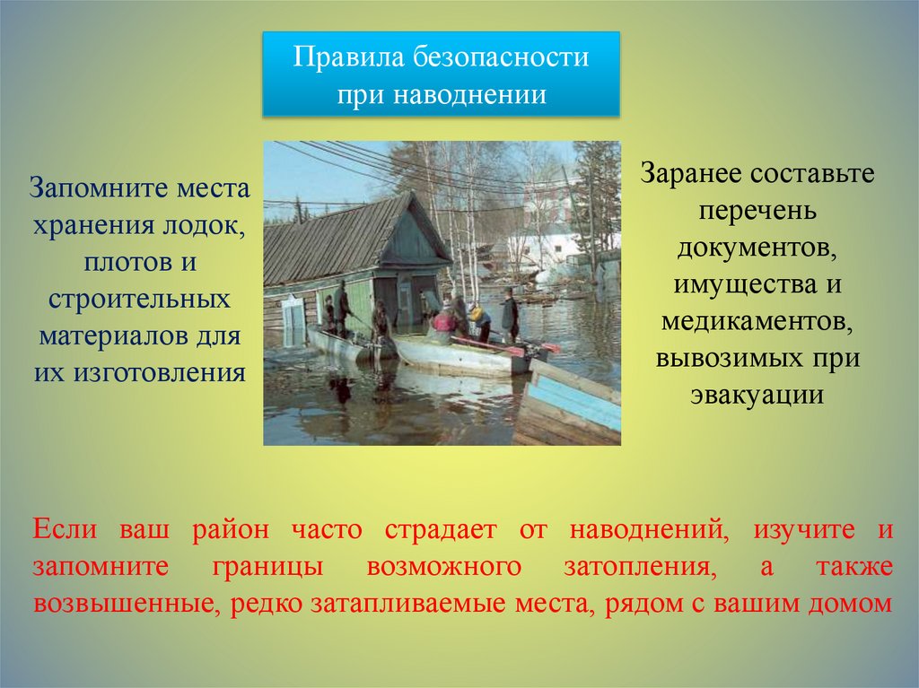 возвышенные, редко затапливаемые места, рядом с вашим домом