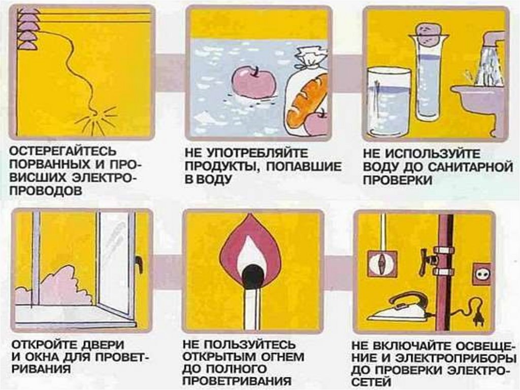 - взять, заранее приготовленные вещи (радиоприемник, документы и ценные вещи,