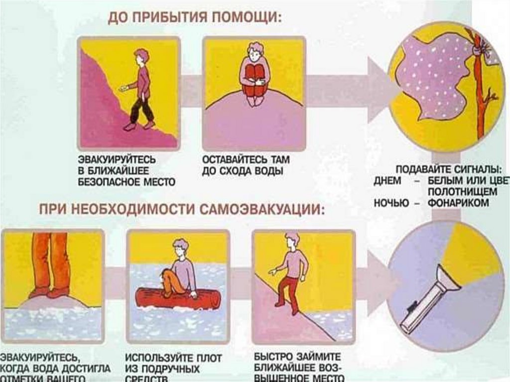 метров. Уходить от берега необходимо вверх по склонам, а не по долинам рек;