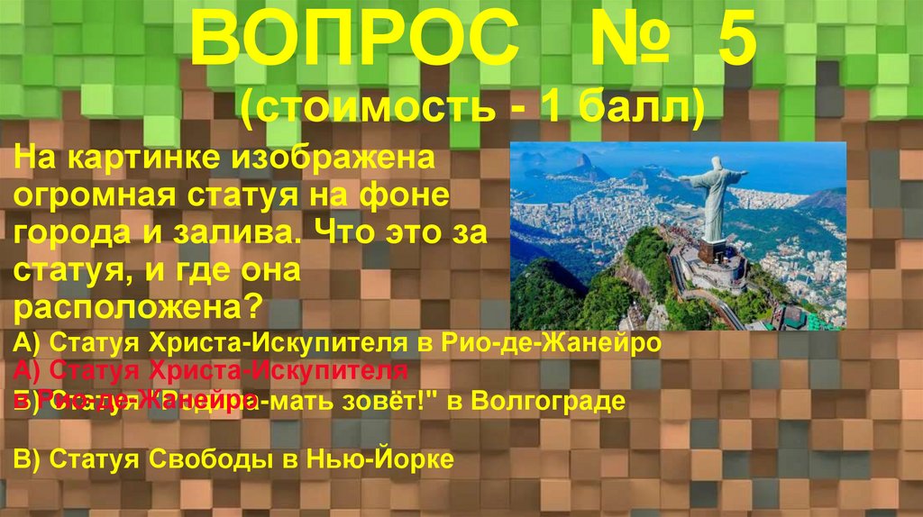 А) Статуя Христа-Искупителя в Рио-де-Жанейро
