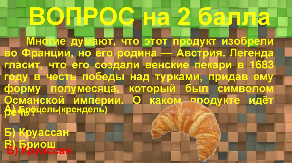 ВОПРОС на 2 баллаМногие думают, что этот продукт изобрели