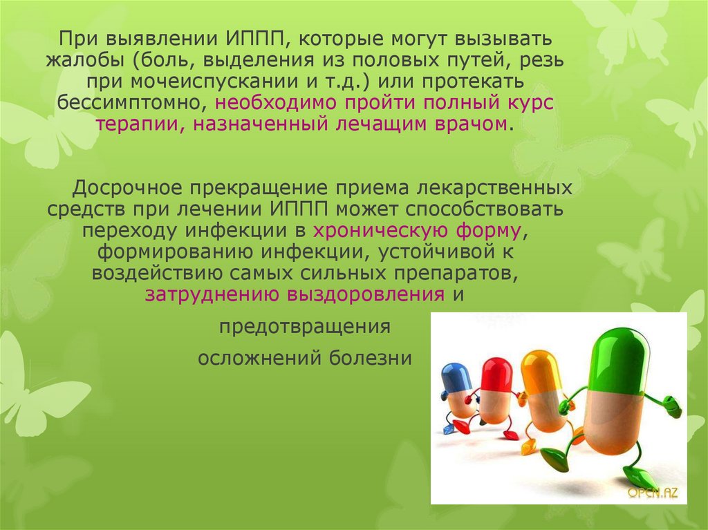 При выявлении ИППП, которые могут вызыватьжалобы (боль, выделения из половых путей, резь