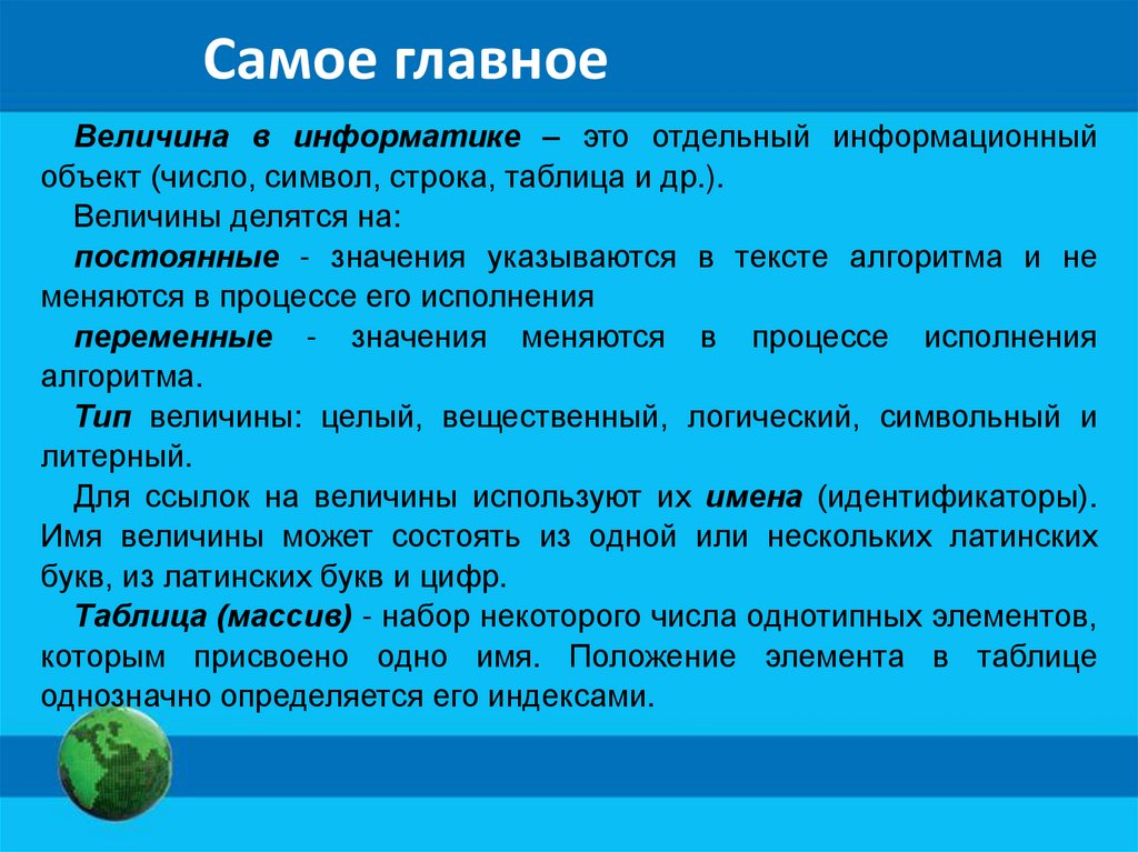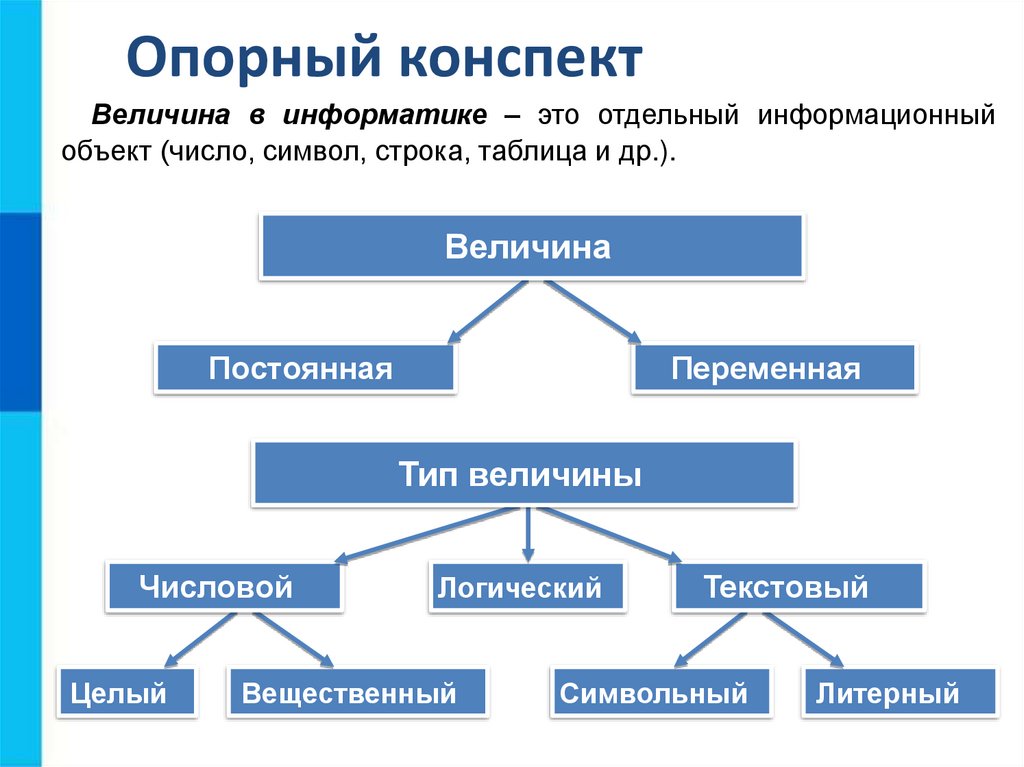 Опорный конспектВеличина в информатике – это отдельный информационный