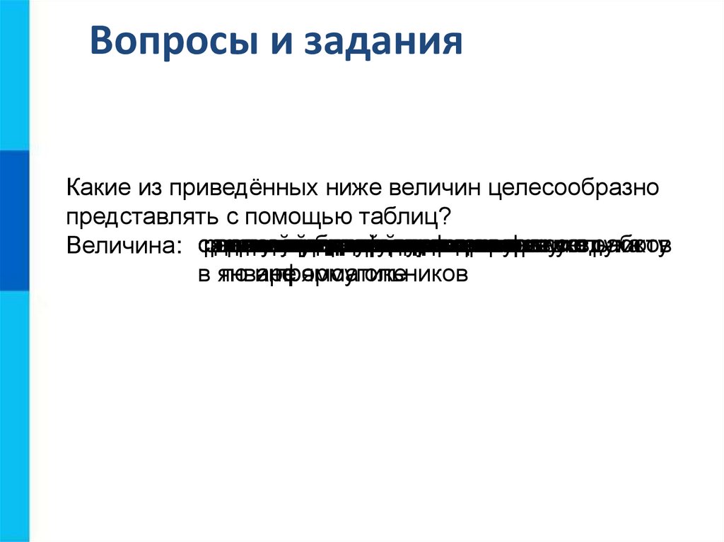 Вопросы и заданияКакие из приведённых ниже величин целесообразно
