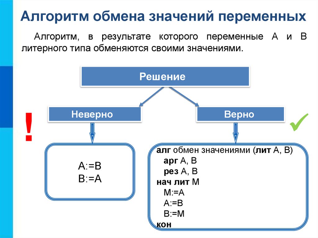 Алгоритм обмена значений переменныхАлгоритм, в результате которого переменные А и В