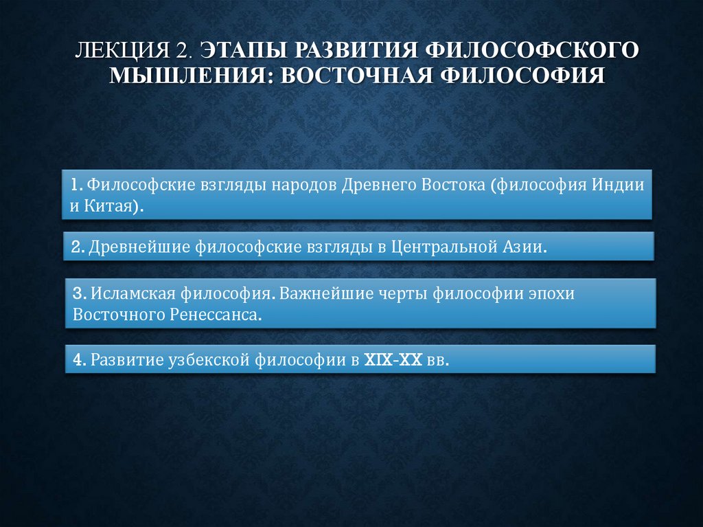ЛЕКЦИЯ 2. ЭТАПЫ РАЗВИТИЯ ФИЛОСОФСКОГОМЫШЛЕНИЯ: ВОСТОЧНАЯ ФИЛОСОФИЯ