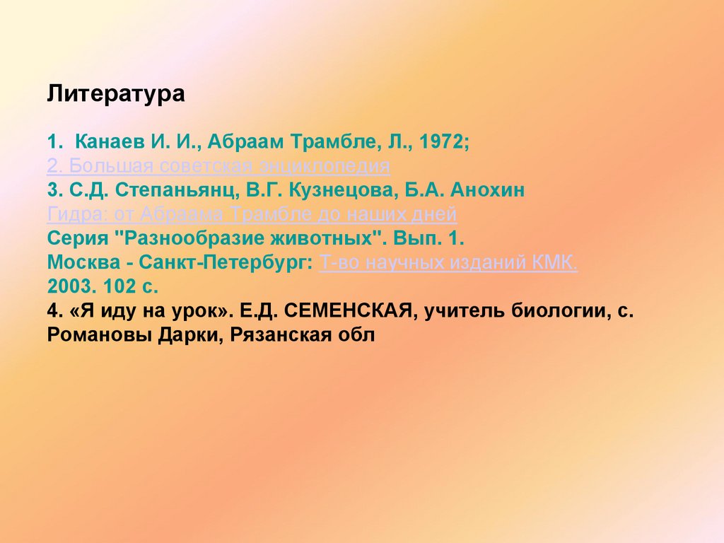 Литература1. Канаев И. И., Абраам Трамбле, Л., 1972;
