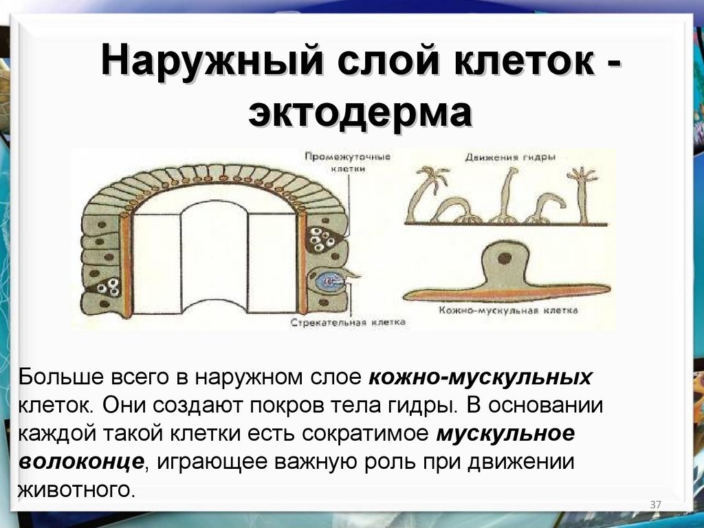 1 - клетки, выстилающие наружную стенку тела и стенки поровых