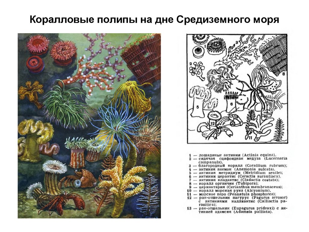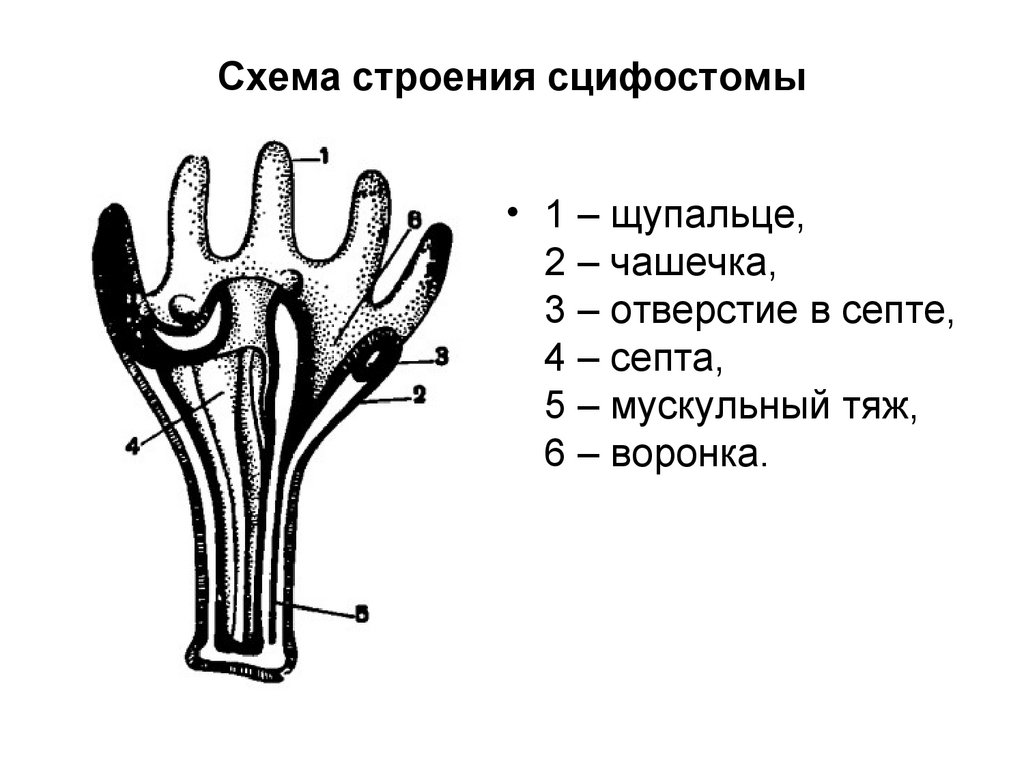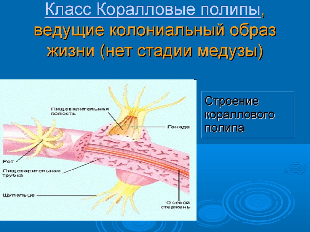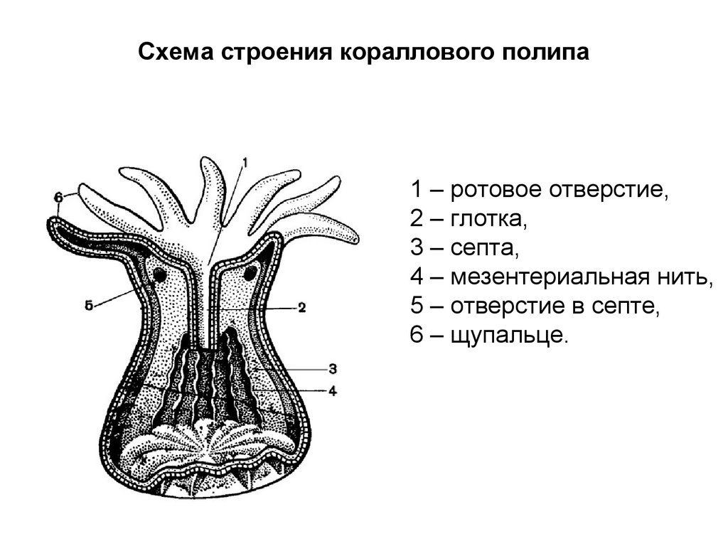 Схема строения кораллового полипа1 – ротовое отверстие,