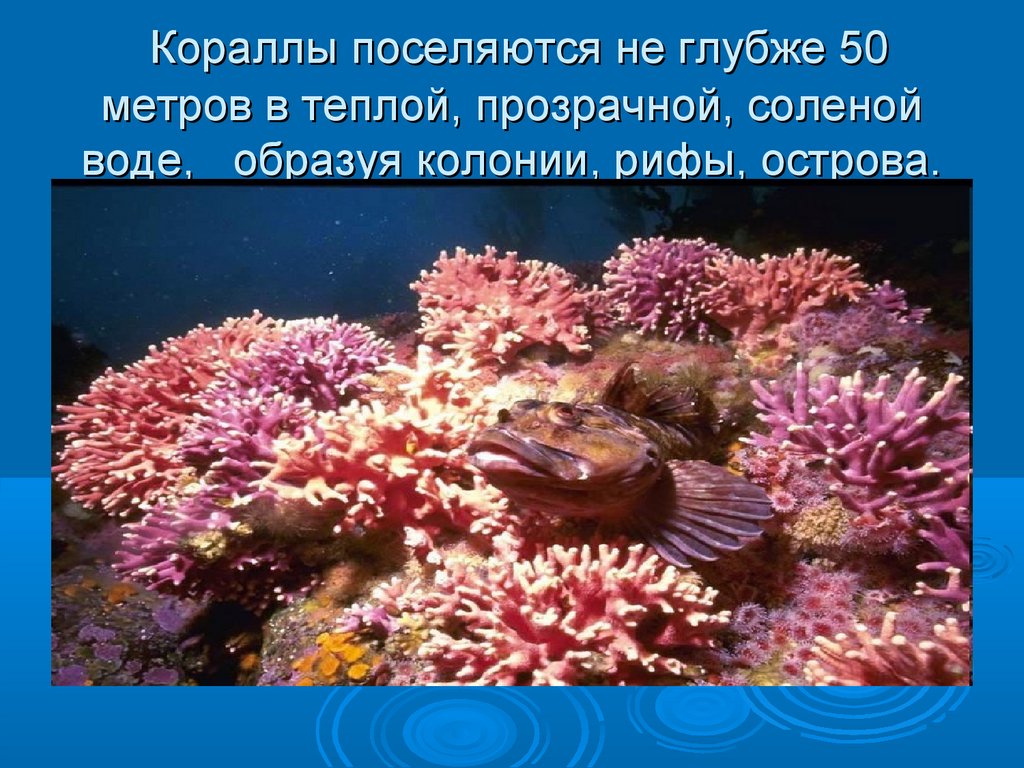 Кораллы поселяются не глубже 50метров в теплой, прозрачной, соленой