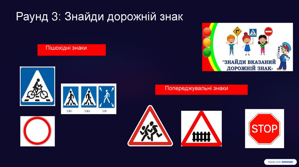 Раунд 3: Знайди дорожній знакПішохідні знаки