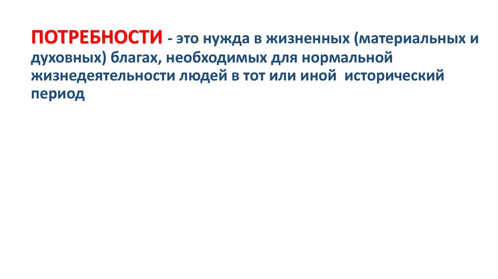 ПОТРЕБНОСТИ - это нужда в жизненных (материальных идуховных) благах, необходимых для нормальной