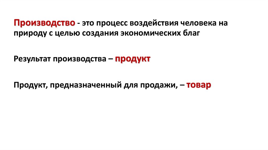 Производство - это процесс воздействия человека наприроду с целью создания экономических благ