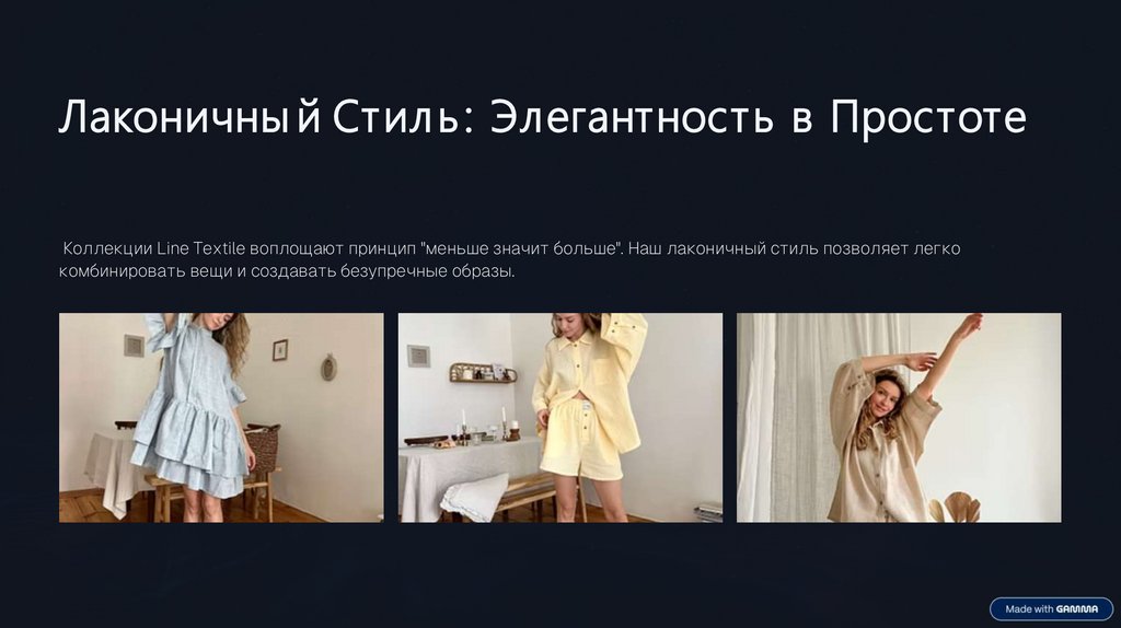 Стил ь Жизни L ine Tex tileНаша одежда — это не просто вещи, это манифест осознанного потребления и стремление к естественной красоте.