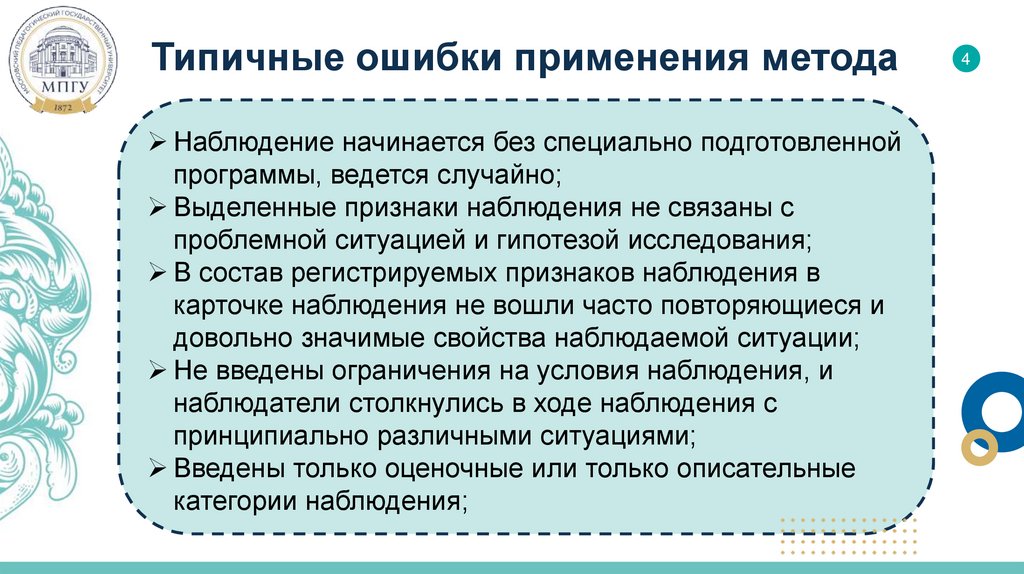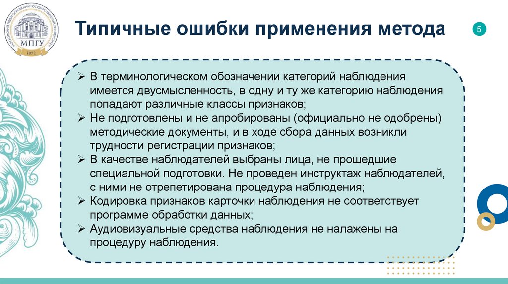 Типичные ошибки применения методаВ терминологическом обозначении категорий наблюдения