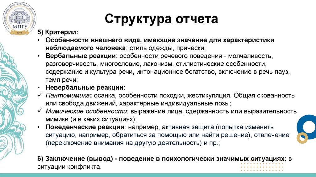 6) Заключение (вывод) - поведение в психологически значимых ситуациях: в