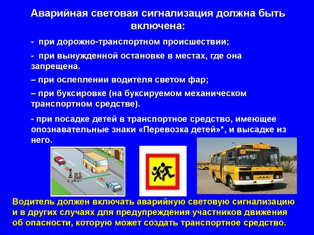 11. В каких случаях на буксируемом механическом транспортном средстве должна быть включена аварийная сигнализация? 1. Только в