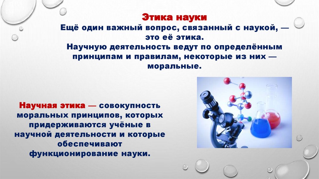 Этика наукиЕщё один важный вопрос, связанный с наукой, —