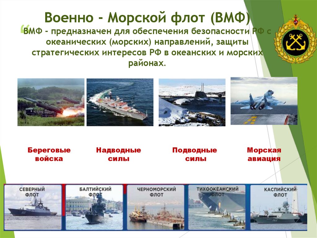 ВМФ - предназначен для обеспечения безопасности РФ с