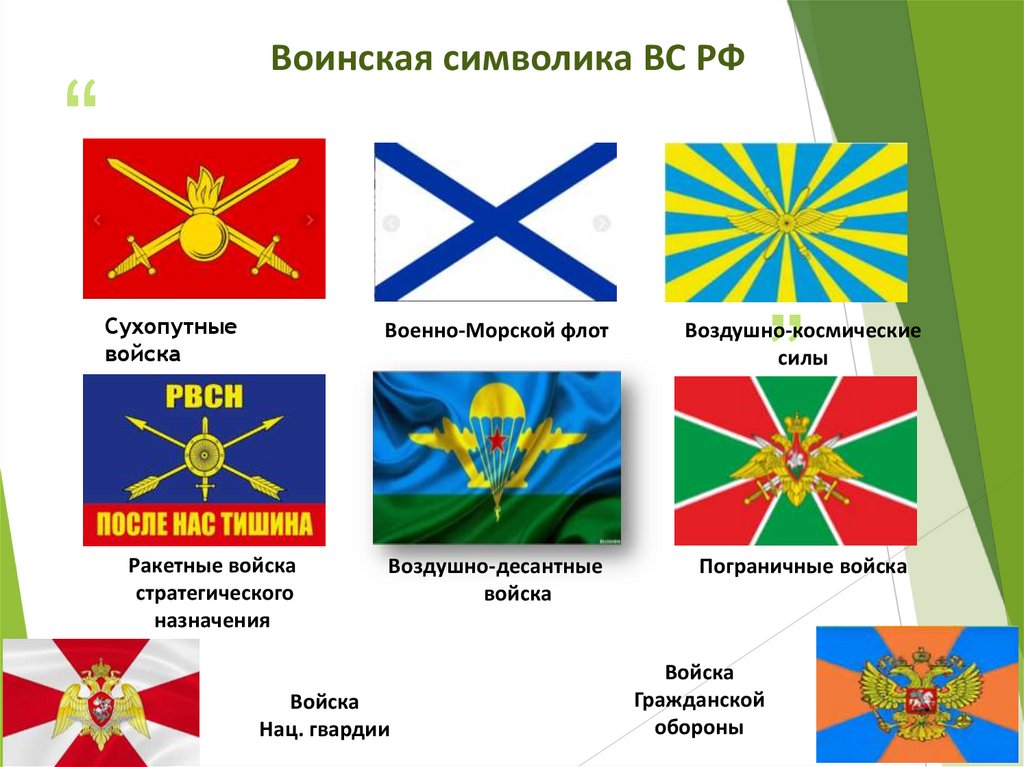 7. 1. Сухопутные войска 2. Воздушно-Космические силы 3.Военно-морской флот
