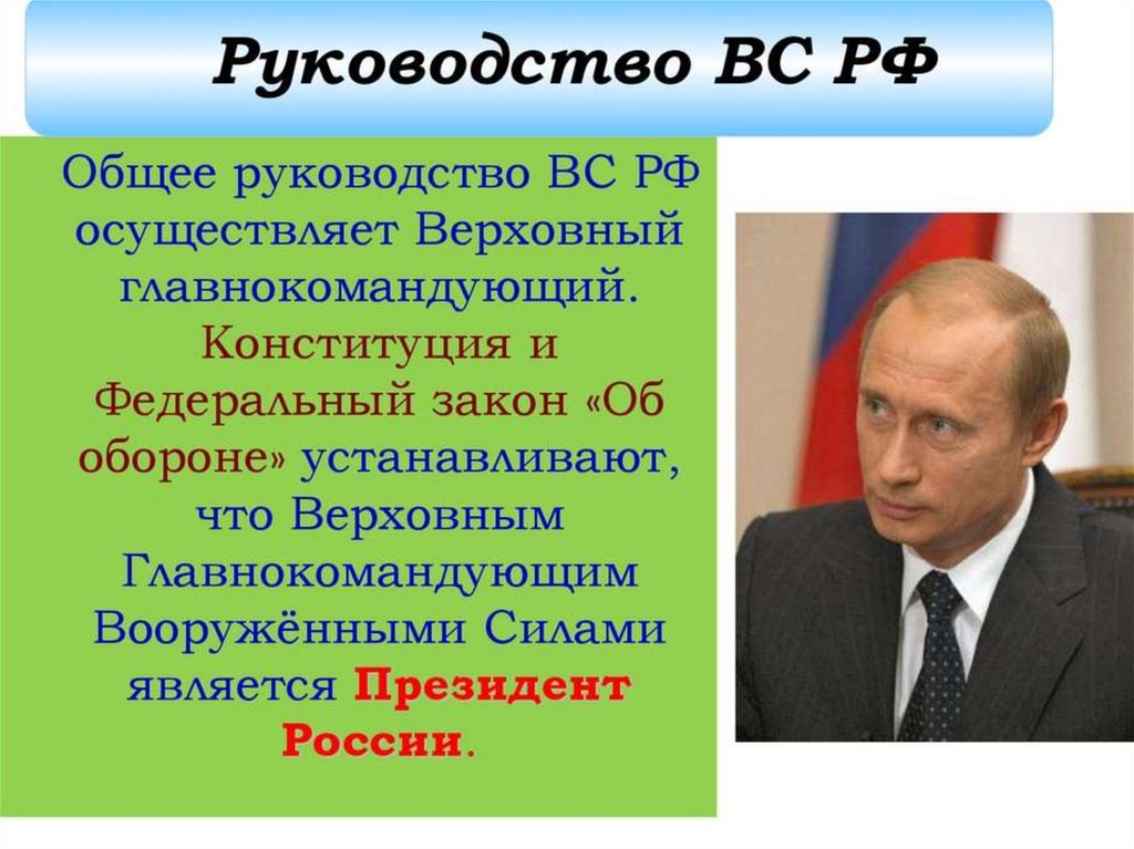 3. Выписать «Кто осуществляет общее руководство ВС РФ»