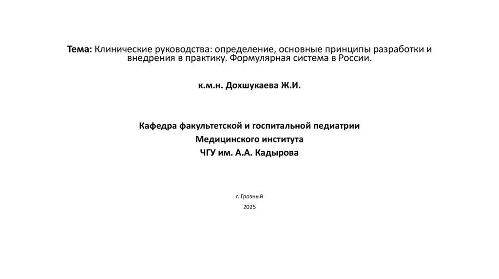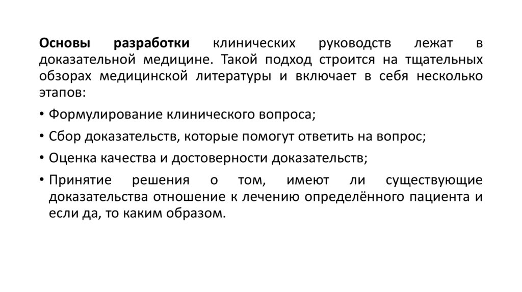 Тема: Клинические руководства: определение, основные принципы разработки ивнедрения в практику. Формулярная система в России.